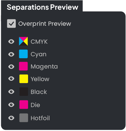 You can then use the hide and show options to separate the individual colours that are present in the document for your verification.