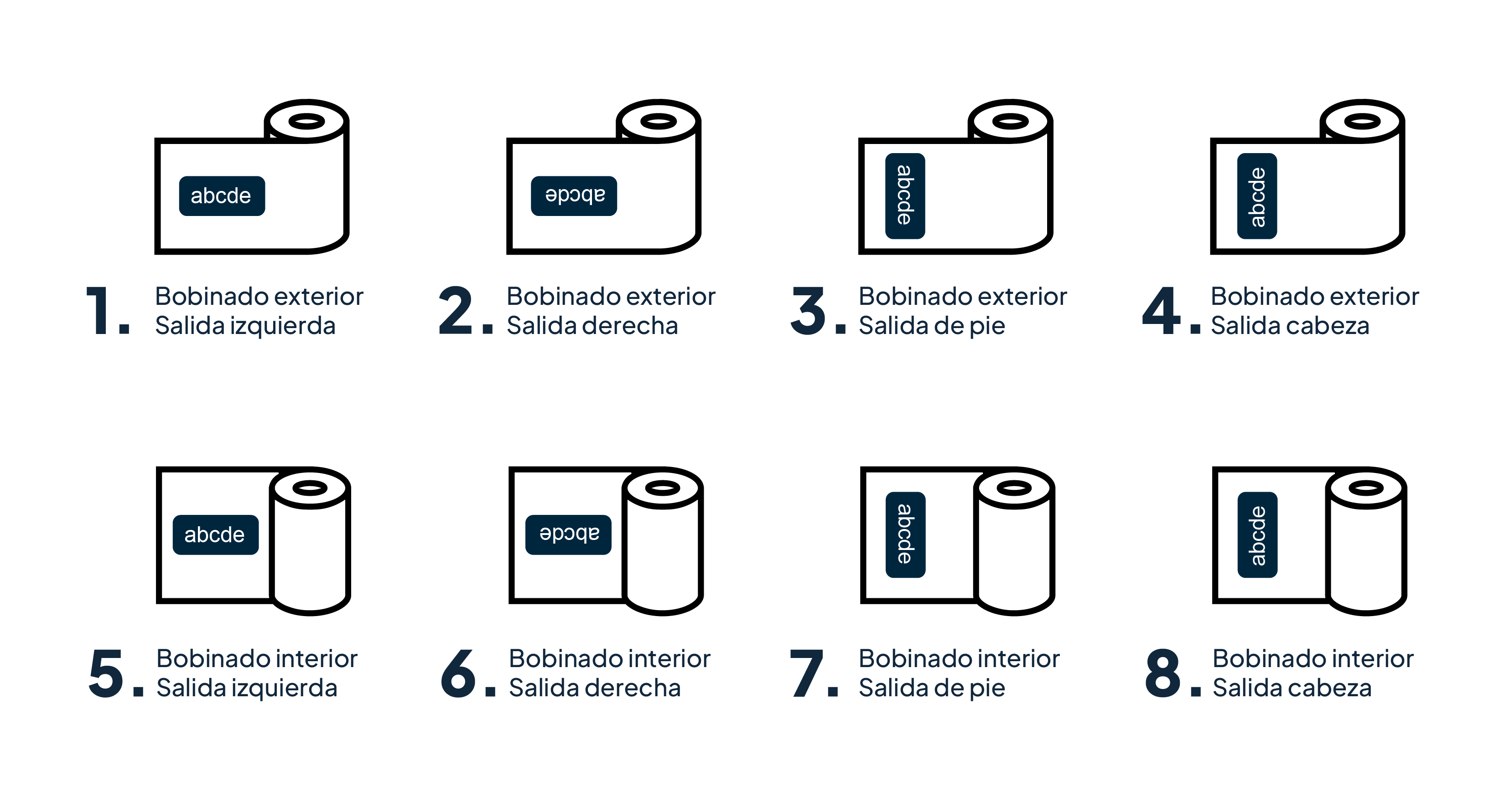 Of course. In the second step of the ordering process, you have the option to define the winding direction of your label rolls. You can choose from the following options.